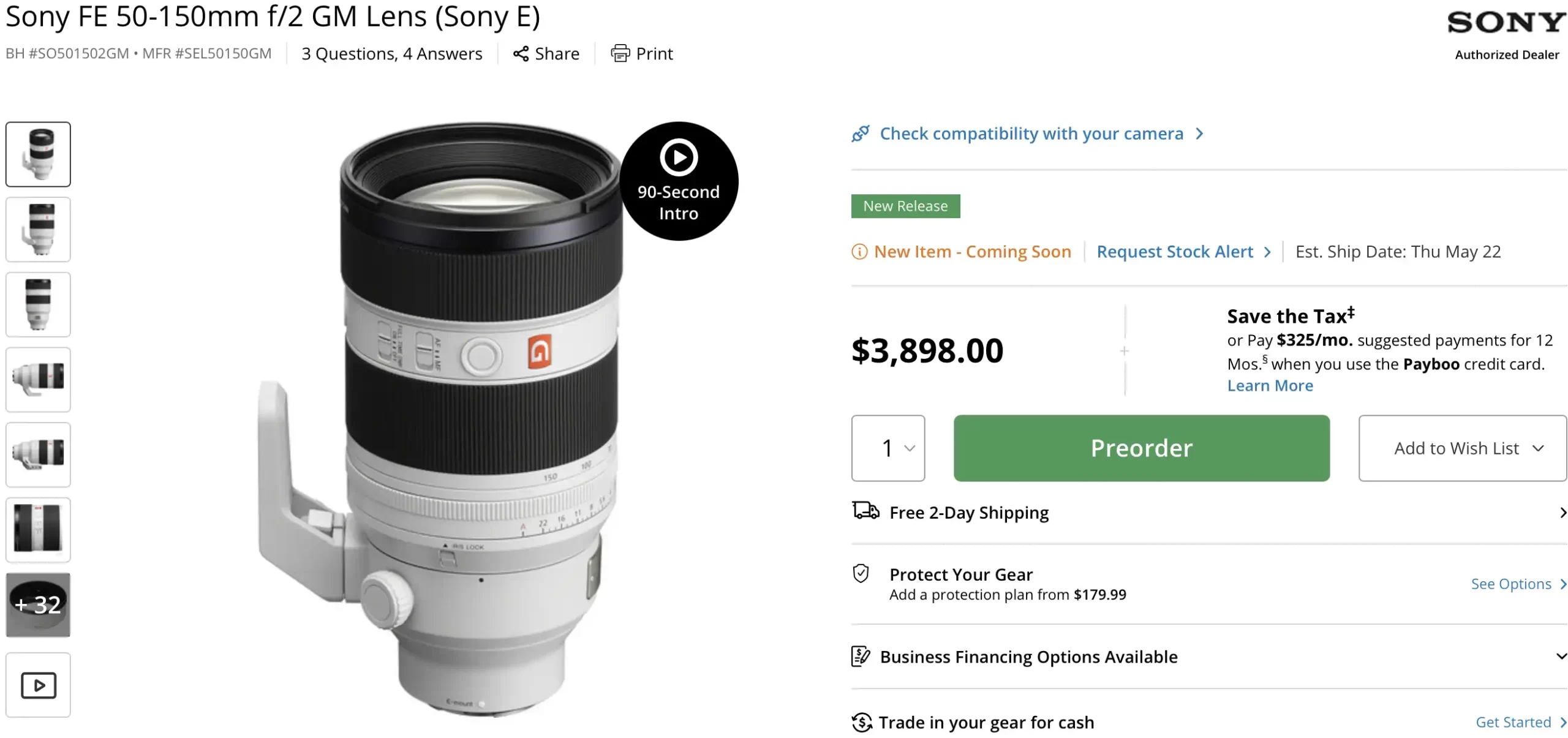 Sony FE 50-150mm f/2 GM: B&H Photo / Amazon / Adorama