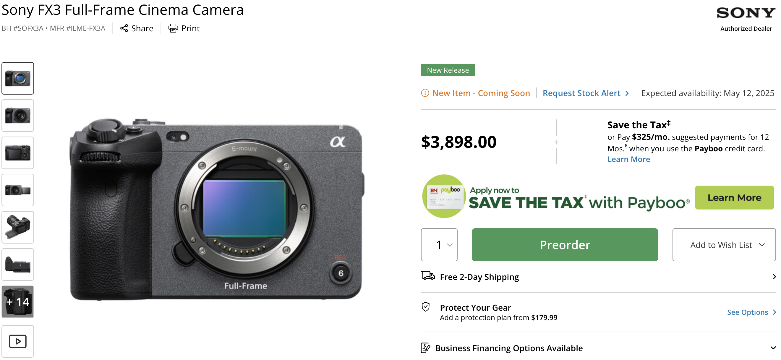 Sony just announced the updated Sony FX3a, which can be preordered from B&H Photo. The only difference between the Sony FX3a and FX3 is that the LCD screen has been increased from 1.44m dots to 2.36m dots, USB-C replaces older USB 3.2 Gen 1 ports, and the charger has changed from BC-QZ1 to BC-ZD1.