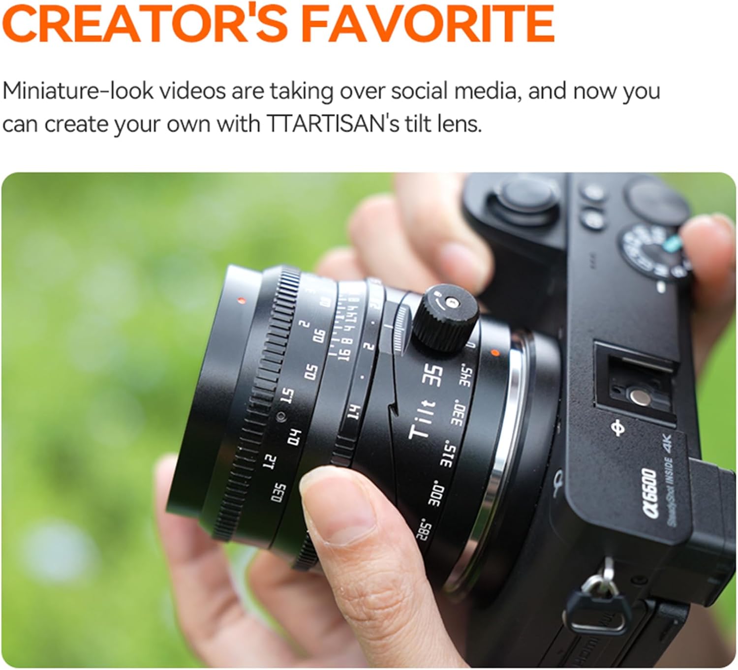 - Creator’s Favorite:With a tilt lens, real houses turn into tiny toys, cars become scale models and even people look like building block toy.Miniature-look videos are taking over social media, and now you can create your own with TTARTISAN’s tilt lens.