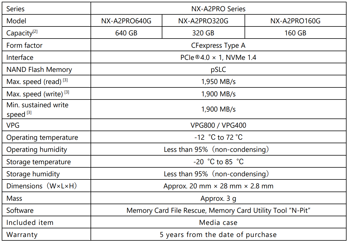 ■ CFexpress4.0 Type A memory card: NX-A2PRO Series