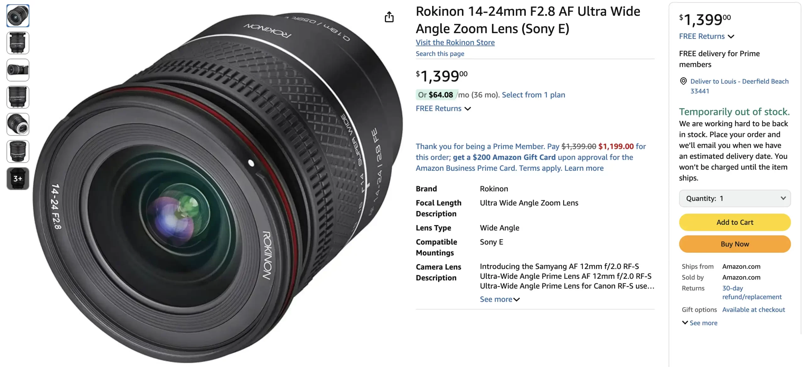 While Amazon has the lens listed for $1,499, sold by Amazon.com for $200 more!