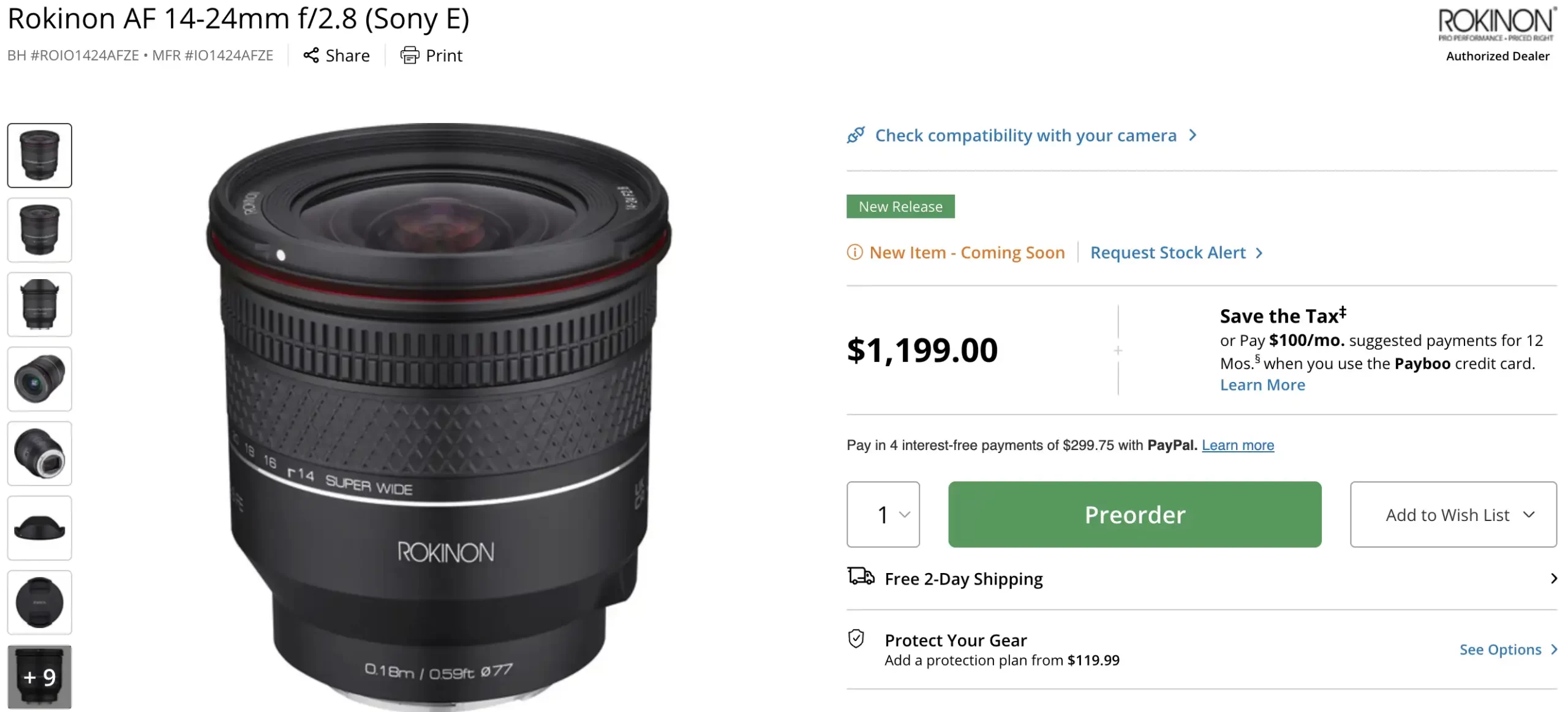 The Rokinon AF 14-24mm f/2.8 has shown up for preorder, and let me say DO NOT DELAY IF YOU WANT ON ORDER FROM B&H PHOTO NOW, because they tend to honor the listed price, and it might just save you $200. This lens has been known as the Schneider Kreuznach × LK Samyang 14-24mm f/2.8, and it is a solid lens, as you can see below in Richard Wong’s review, but that is the boring part. The interesting part is that the B&H Photo listed the lens for $1,199.