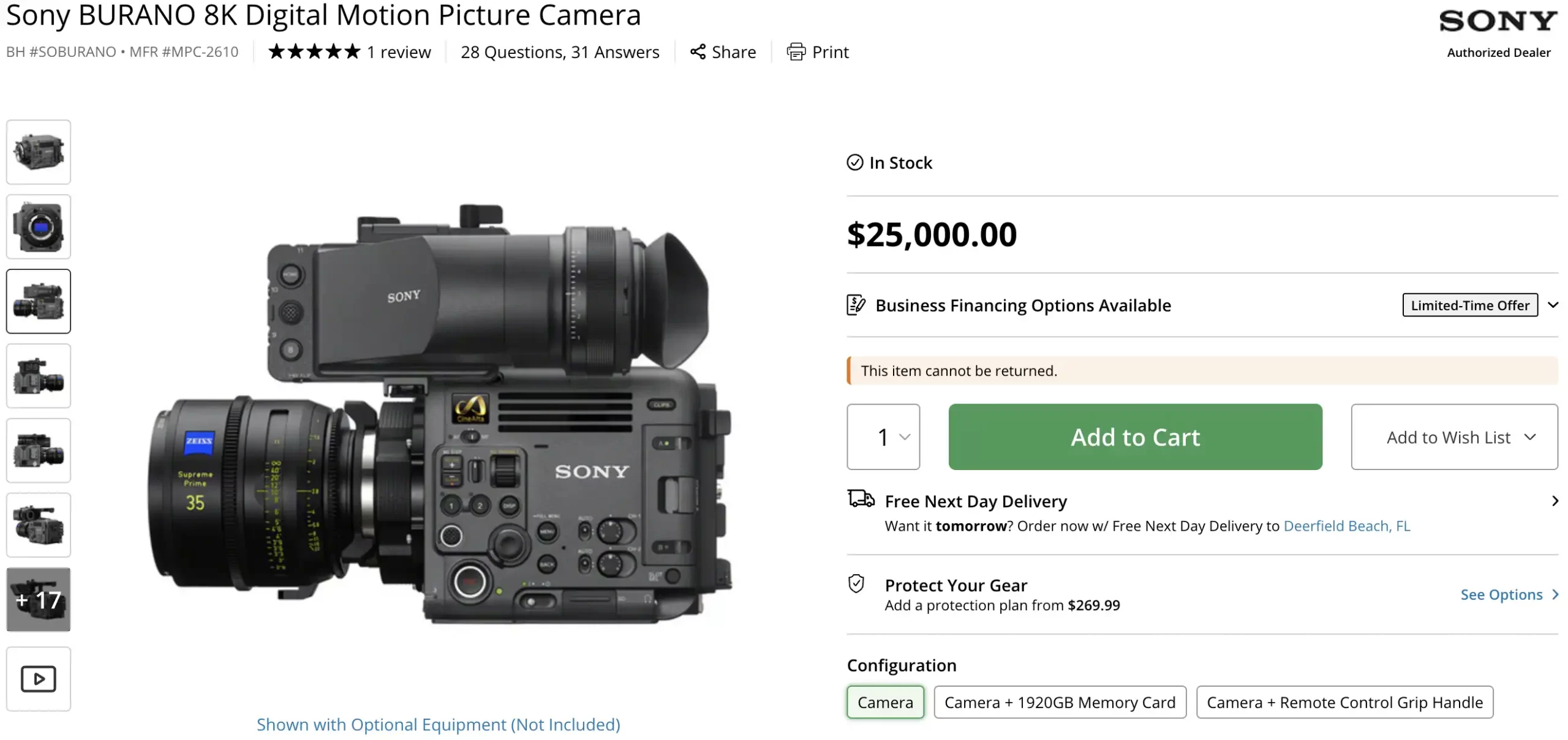 Sony has released firmware 2.01 for the Sony BURANO 8K Digital Motion Picture Camera, which can be downloaded here.