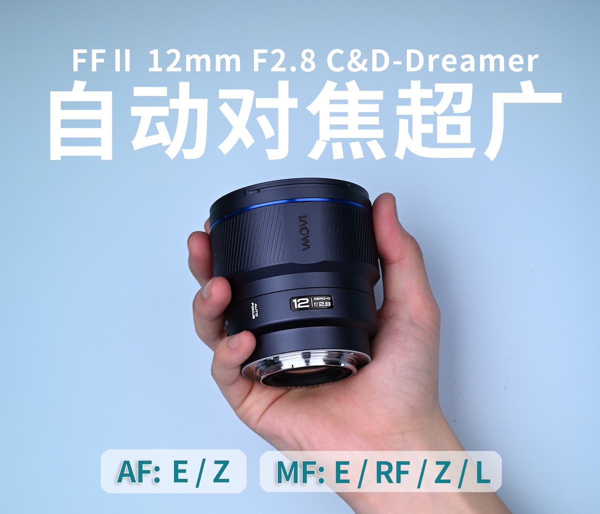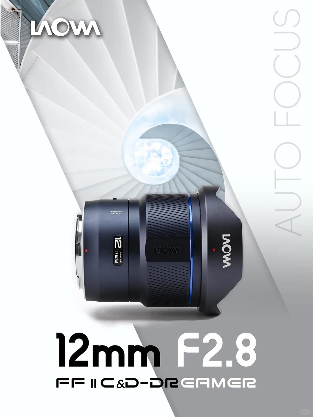 Venus Optics will announce the previously reported Laowa 12mm f/2.8 FFII C&D Dreamer autofocus full-frame ultra wide lens on June 25th. The lens has a 72mm filter size and weighs 377g.