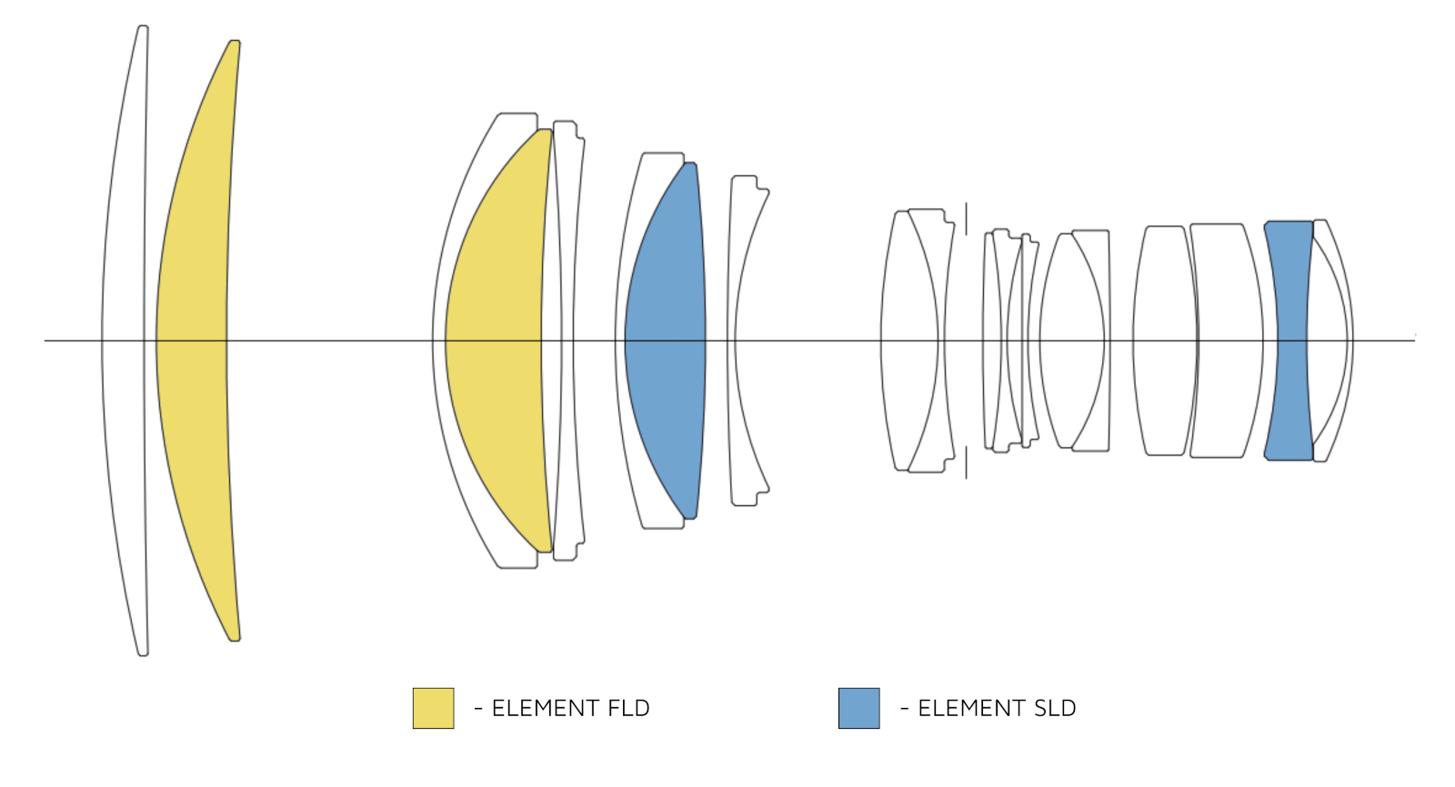 - Professional optical quality – the use of 17 elements in 13 groups, including FLD and SLD lenses, ensures the highest level of sharpness and contrast, reducing all chromatic aberrations and distortions.