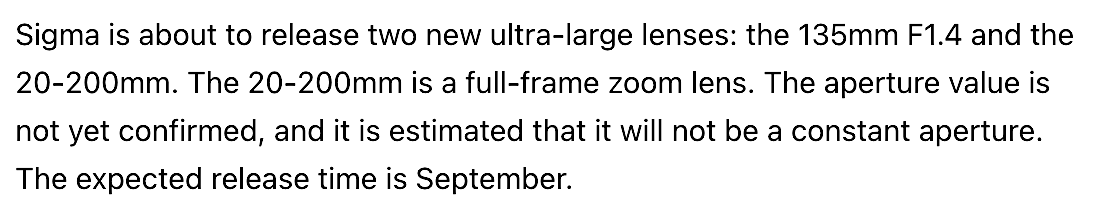 Sigma will announce a new 135mm f/1.4 full-frame lens on September 9th.