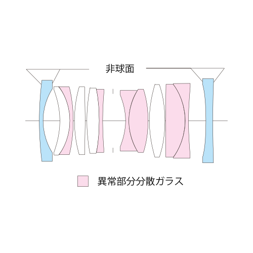 Optical construction12 elements in 8 groups (2x aspherical, 6x ED)