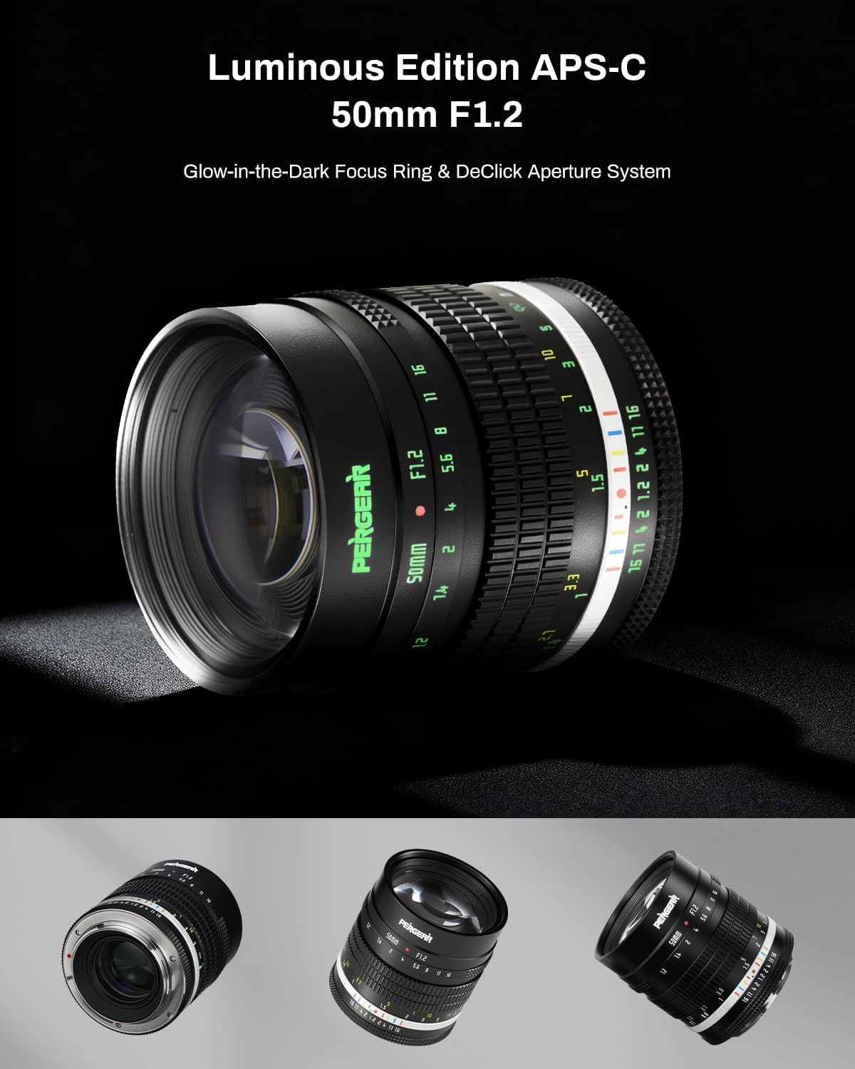 Peargear announced a new lens with luminous markings named the Pergear 50mm f/1.2 APS-C Luminous Edition, and it is available on Amazon.