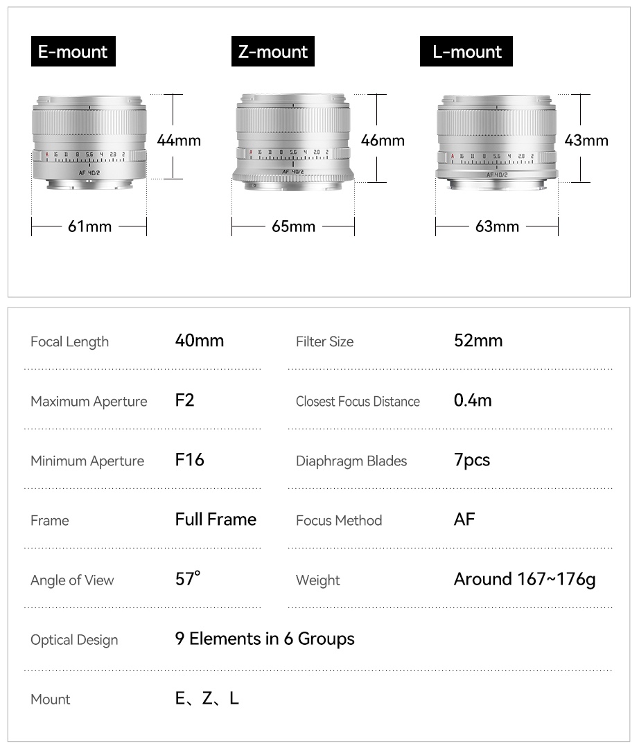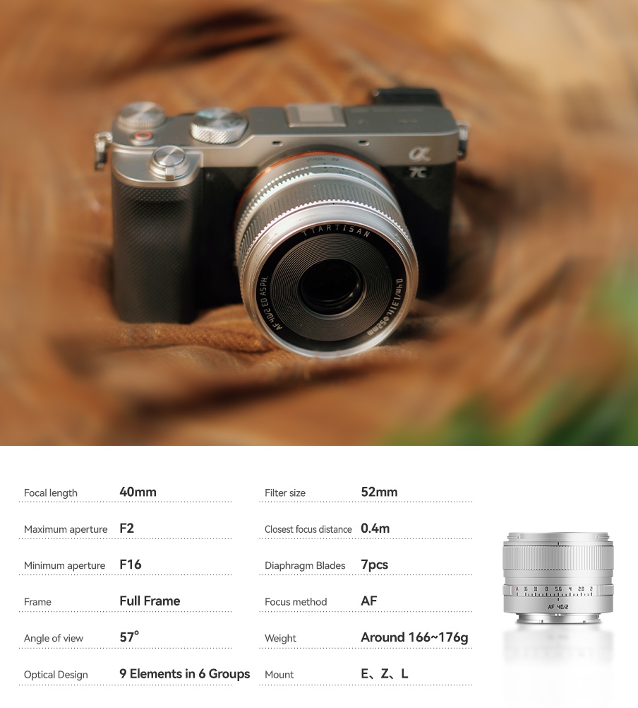 TTArtisan AF 40mm f/2 silver for E-mount is now available.