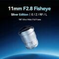 The TTartisan 11mm f/2.8 fisheye full-frame lens (E/Z/RF/L) is now also available in silver: Pre-orders: B&H Photo 180° diagonal angle of view 0.17m closest focus distance Full metal body f/2.8 to f/16 7-blade diaphragm Built-in lens hood Additional pictures: